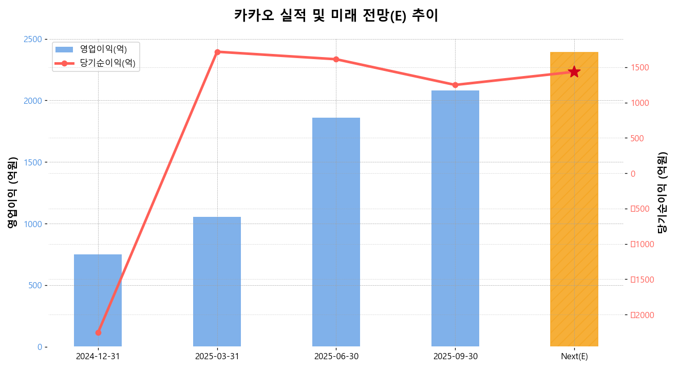 카카오(035720)는 대한민국 디지털 생태계를 선도하는 대표적인 기술 기업입니다. 단순히 모바일 메신저를 넘어, 금융, 모빌리티, 엔터테인먼트, 라이프스타일, 게임 등 광범위한 영역에서 혁신적인 플랫폼 서비스를 제공하며 우리 삶의 필수적인 인프라로 자리매김했습니다. 이 모든 서비스의 기반에는 인공지능(AI), 빅데이터, 클라우드 컴퓨팅 등 최첨단 기술력이 견고하게 뒷받침하고 있습니다. 카카오페이와 카카오뱅크는 디지털 금융 혁신을 이끌고 있으며, 카카오모빌리티는 이동의 패러다임을 변화시키고 있습니다. 카카오엔터테인먼트와 카카오게임즈는 콘텐츠 산업의 새로운 지평을 열어가고 있죠. 이처럼 카카오는 각 서비스가 유기적으로 연결된 강력한 에코시스템을 구축하여 독보적인 시장 지위를 확보하고 있으며, 이는 미래 성장 동력의 핵심이 됩니다. 특히 AI 기반의 개인화 서비스 강화, 데이터 분석을 통한 사용자 경험 최적화는 카카오가 지향하는 '세상을 바꿀 기술' 컨셉의 핵심입니다.