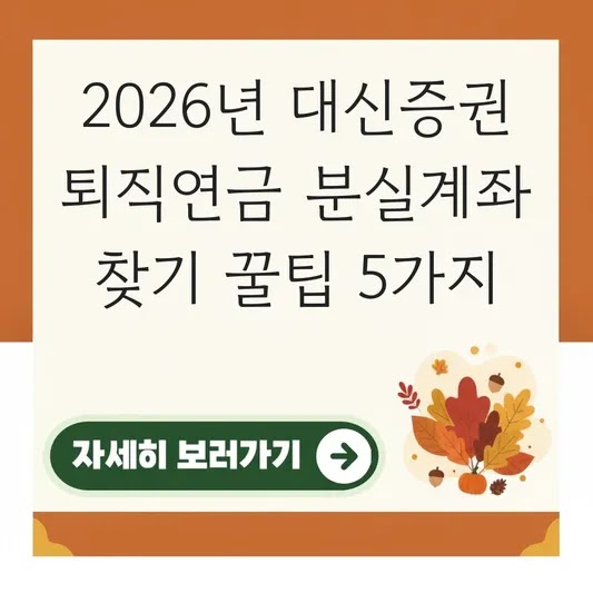 2026년 대신증권 퇴직연금 분실계좌 찾기 꿀팁 5가지