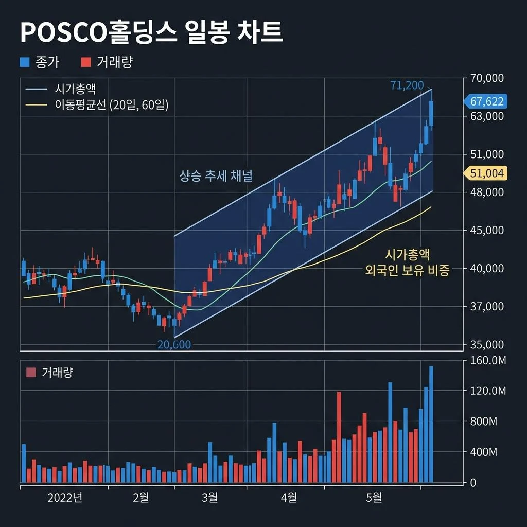 강력한 포트폴리오 다각화와 친환경 전환: 전통 철강 사업의 견고한 기반 위에서 이차전지 소재, 수소 등 친환경 미래소재 사업으로의 성공적인 전환을 가속화하고 있습니다. 이는 변동성이 큰 산업 환경 속에서 안정적인 수익 구조와 새로운 성장 모멘텀을 확보하는 전략적 선택입니다. 특히 'Green Materials and Energy' 섹터는 향후 기업 가치 재평가의 핵심 동인이 될 것입니다.