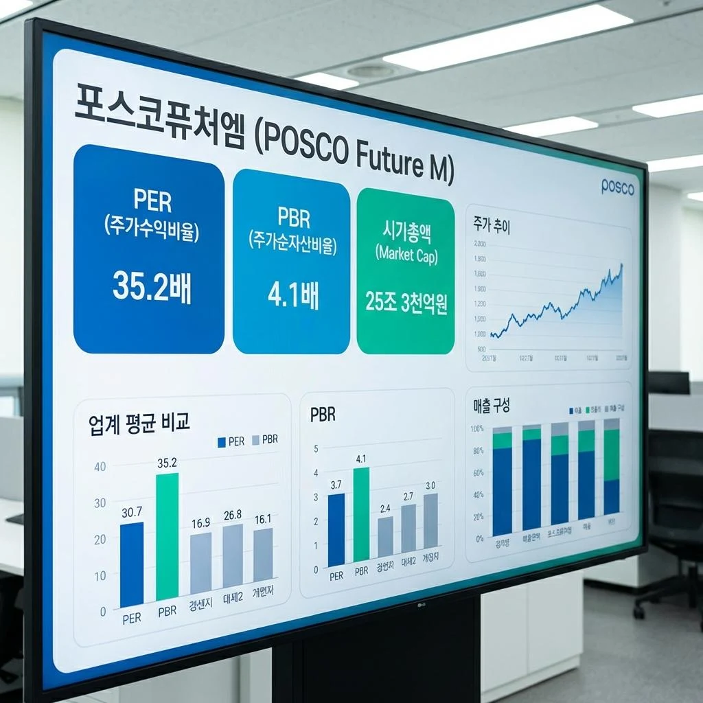 현재 포스코퓨처엠의 주가는 210,500원으로, 금일 -9.31%의 수익률을 기록하며 시장의 우려를 반영하고 있습니다. 주요 재무 지표를 통해 현재 밸류에이션을 평가해 보면 다음과 같습니다.