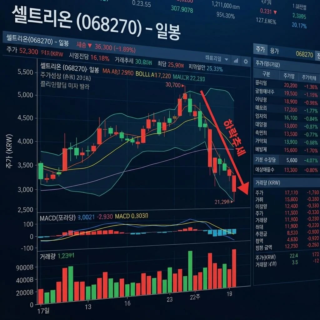 셀트리온(068270)은 바이오시밀러 시장의 선두주자로서 견고한 파이프라인과 글로벌 시장 확대 전략을 통해 장기적인 성장 잠재력을 보유하고 있습니다. 그러나 최근 주가 하락세(-10.64%)는 단기적인 시장 리스크를 분명히 시사하며 투자자들의 주의를 요구합니다.